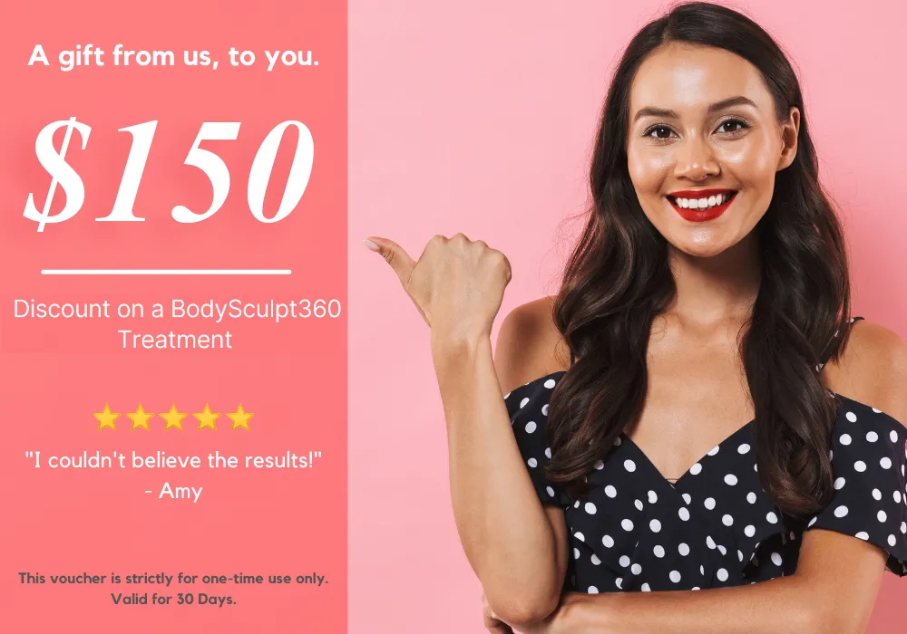 Such as Non-invasive Liposuction, vacuum therapy, radio frequency etc. With BodySculpt 360, there is no downtime.